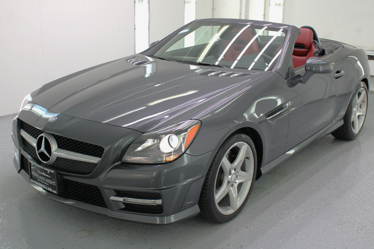 Take a joyride in this sleek Gray 2013 Mercedes-Benz SLK-Class and experience the thrill of its 1.8L 16-valve I4 turbocharged engine as you zip around town with the retractable hardtop down. The 8-way pwr adjustable sport seats hug you comfortably during spirited drives, while the dual exhaust with chrome tailpipes adds a sporty touch to your every journey. With the ADAPTIVE BRAKE system and Electronic Stability Program, you can confidently navigate any road with ease.