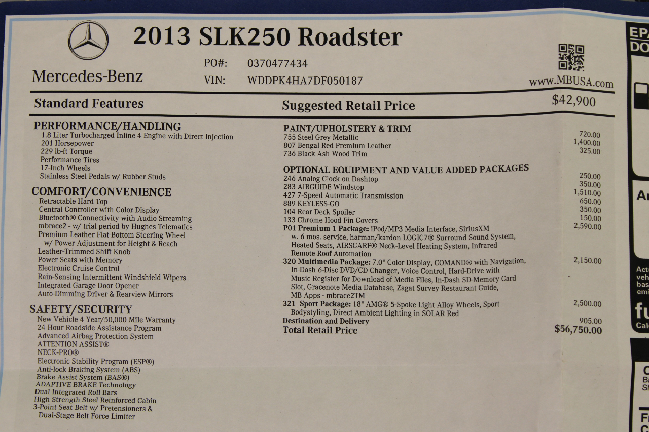 2013 Mercedes-Benz SLK-Class 2dr Roadster SLK 250