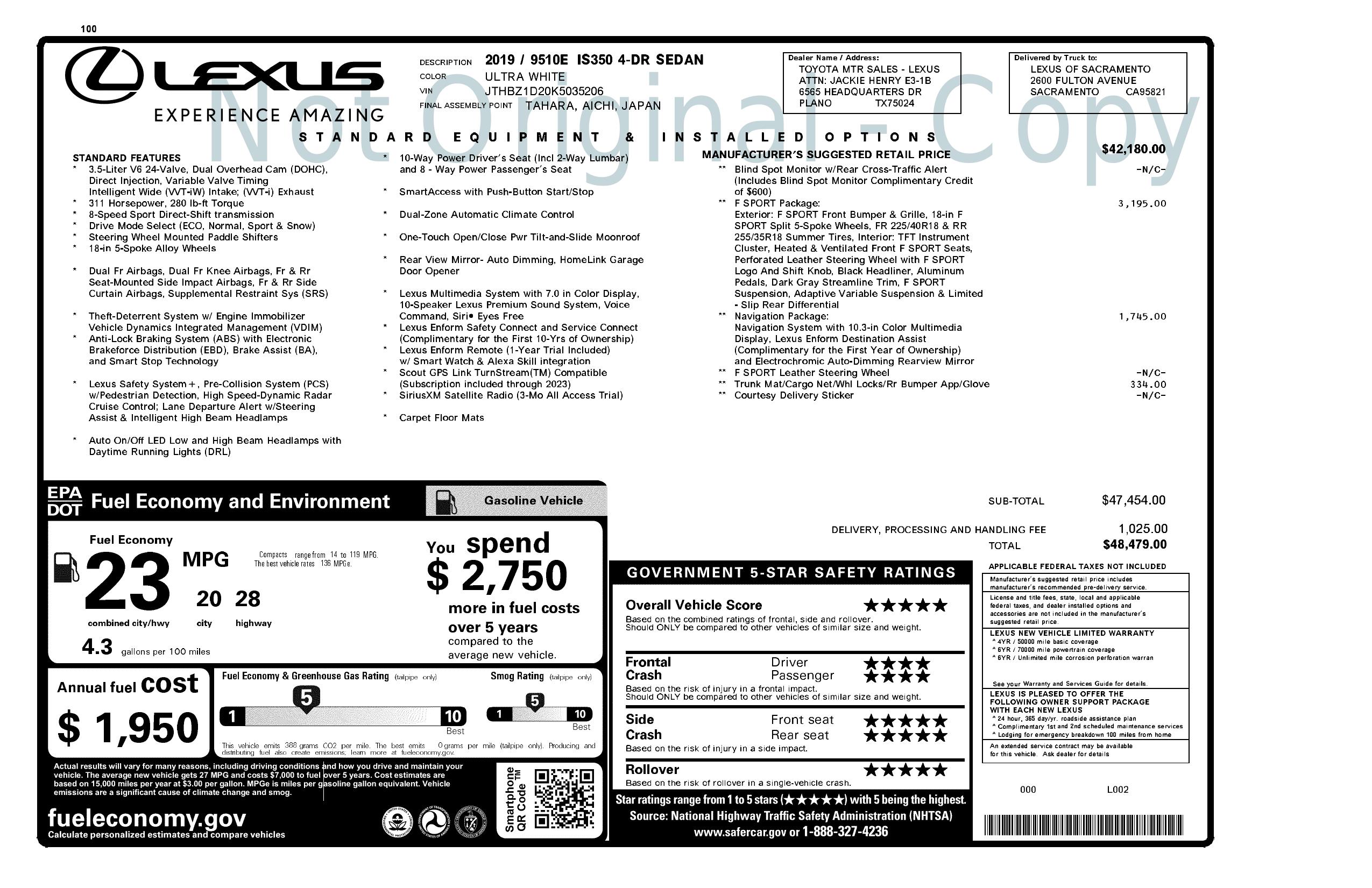 Lexus IS 350 F Sport 4D Sedan 2019